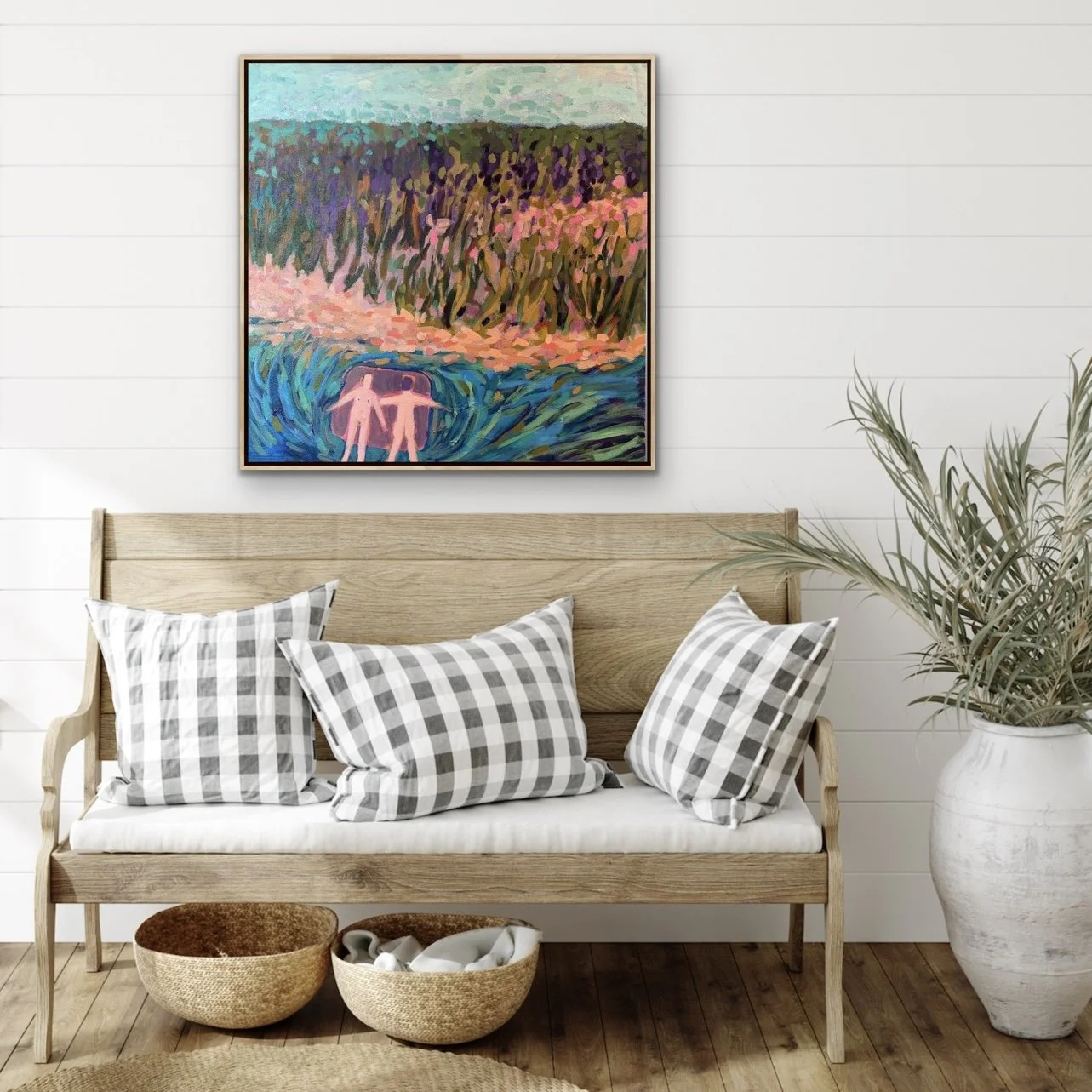 My quirky paintings soften the boundary between abstract and non-representational art. Typically the subject is an imaginative narrative where I find my inspiration from the iconic shapes of every day objects. Similar to outsider art my compositions are characterized by a naivety of shapes, a flattening of space and a total disregard to scale and proportion.